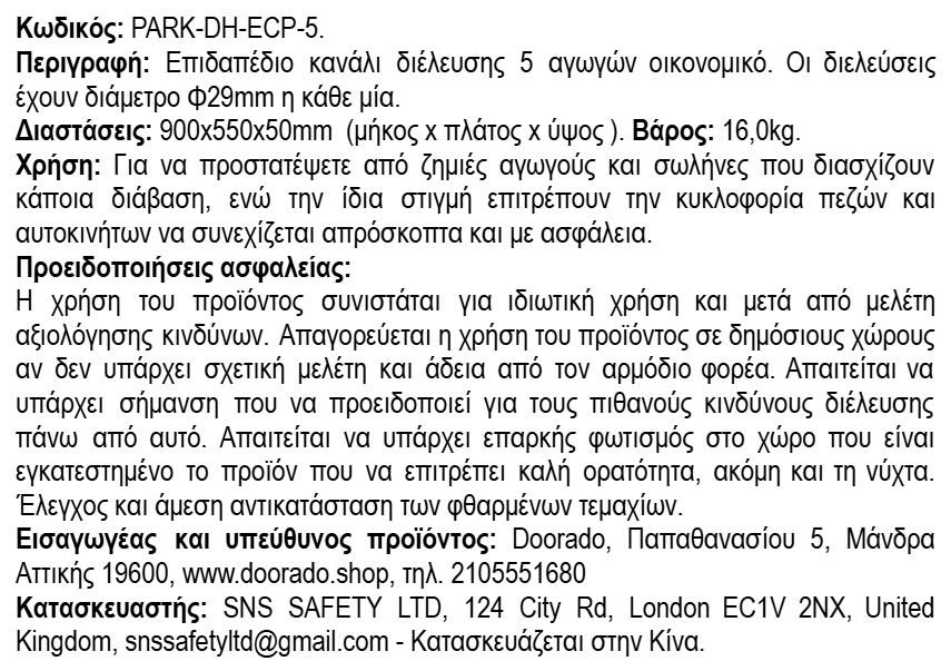 Τα επιδαπέδια κανάλια PARK-DH-ECP-5 έχουν εσωτερικά 5 διελεύσεις Φ29mm η κάθε μία.