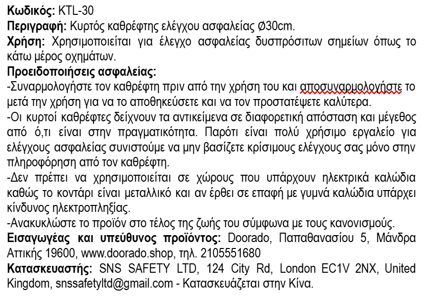 - Παραβολικό καθρέπτη διαμέτρου 30cm για μεγάλη οπτική γωνία