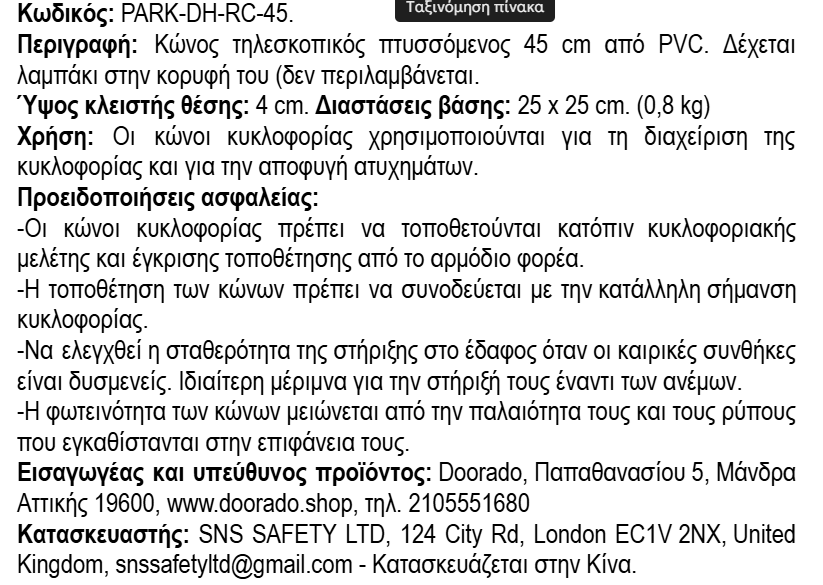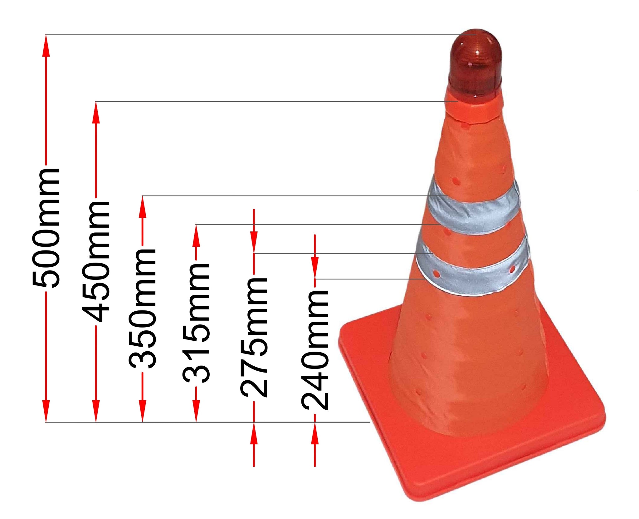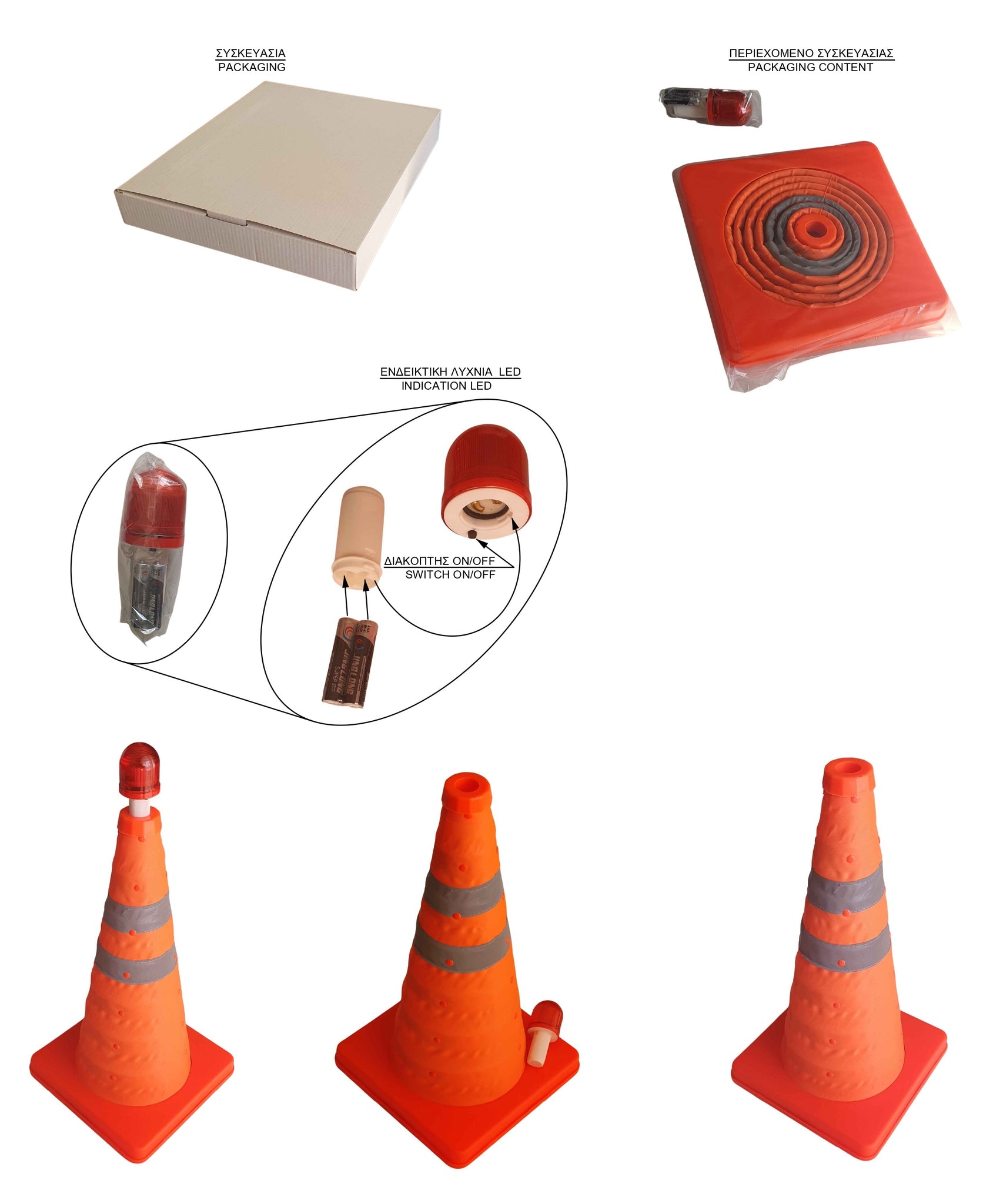 Ο τηλεσκοπικός κώνος σήμανσης είναι απαραίτητο αξεσουάρ για κάθε αυτοκίνητο. Στην κλειστή του θέση καταλαμβάνει ελάχιστο χώρο στο πορτ μπαγκάζ ενώ ανοικτός είναι ένας κανονικός κώνος 45cm. Ο κώνος δρόμου τοποθετείται στο οδόστρωμα σε περίπτωση βλάβης του οχήματος και προειδοποιεί τα διερχόμενα οχήματα για το εμπόδιο στην πορεία τους. Είναι ιδιαίτερα χρήσιμος όταν ακινητοποιηθεί κάποιο όχημα σε εθνική οδό σε δρόμους μεγάλης κυκλοφορία ή σε πολυσύχναστες οδούς.