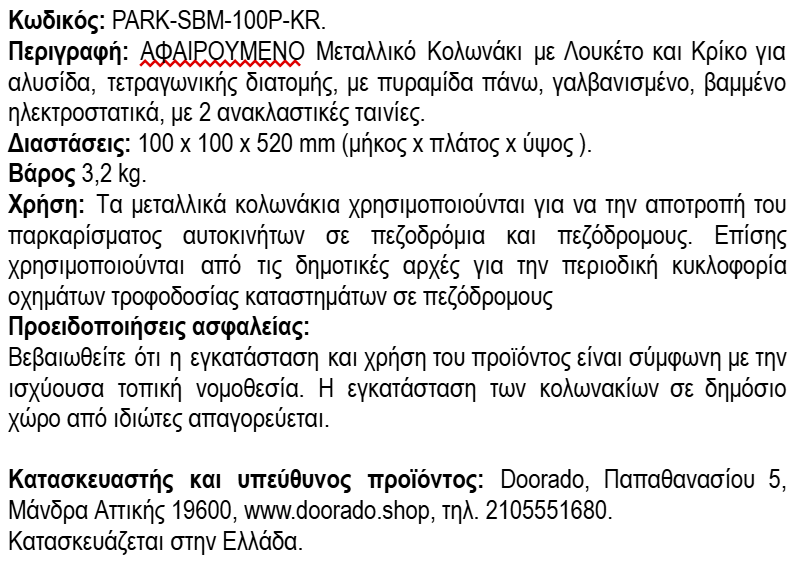 Το Μεταλλικό κολωνάκι PARK-SBM-100P: