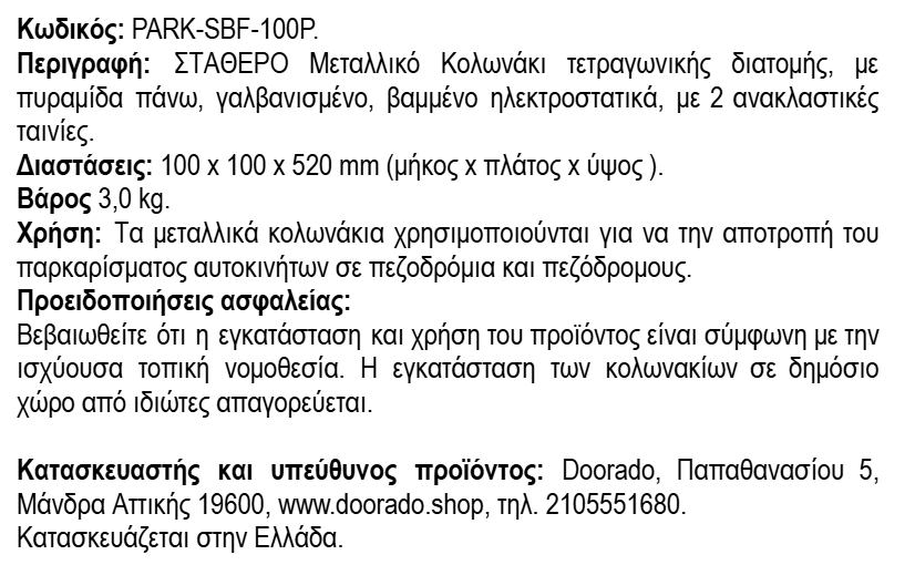 Το Μεταλλικό κολωνάκι PARK-SBF-100P:
