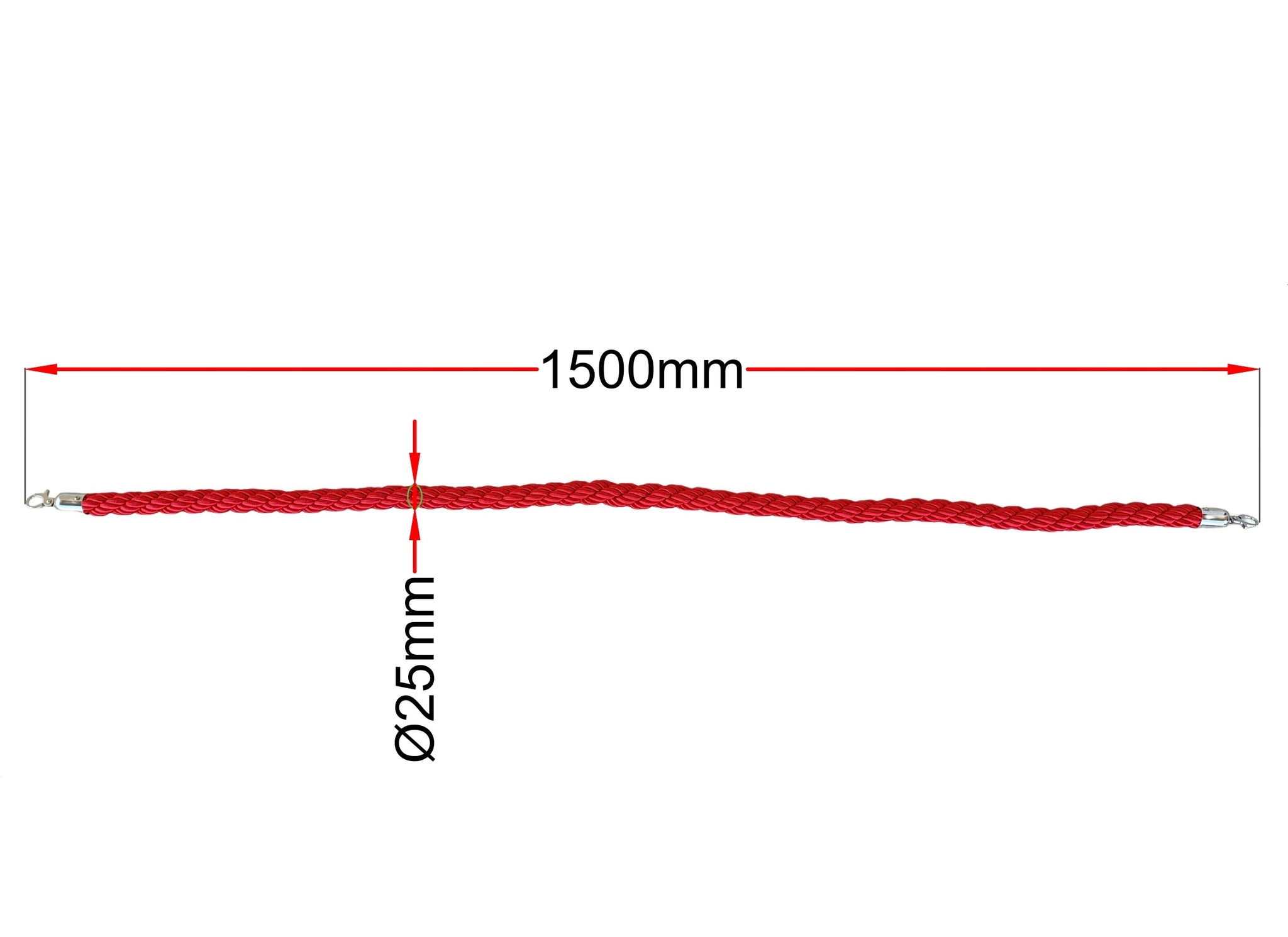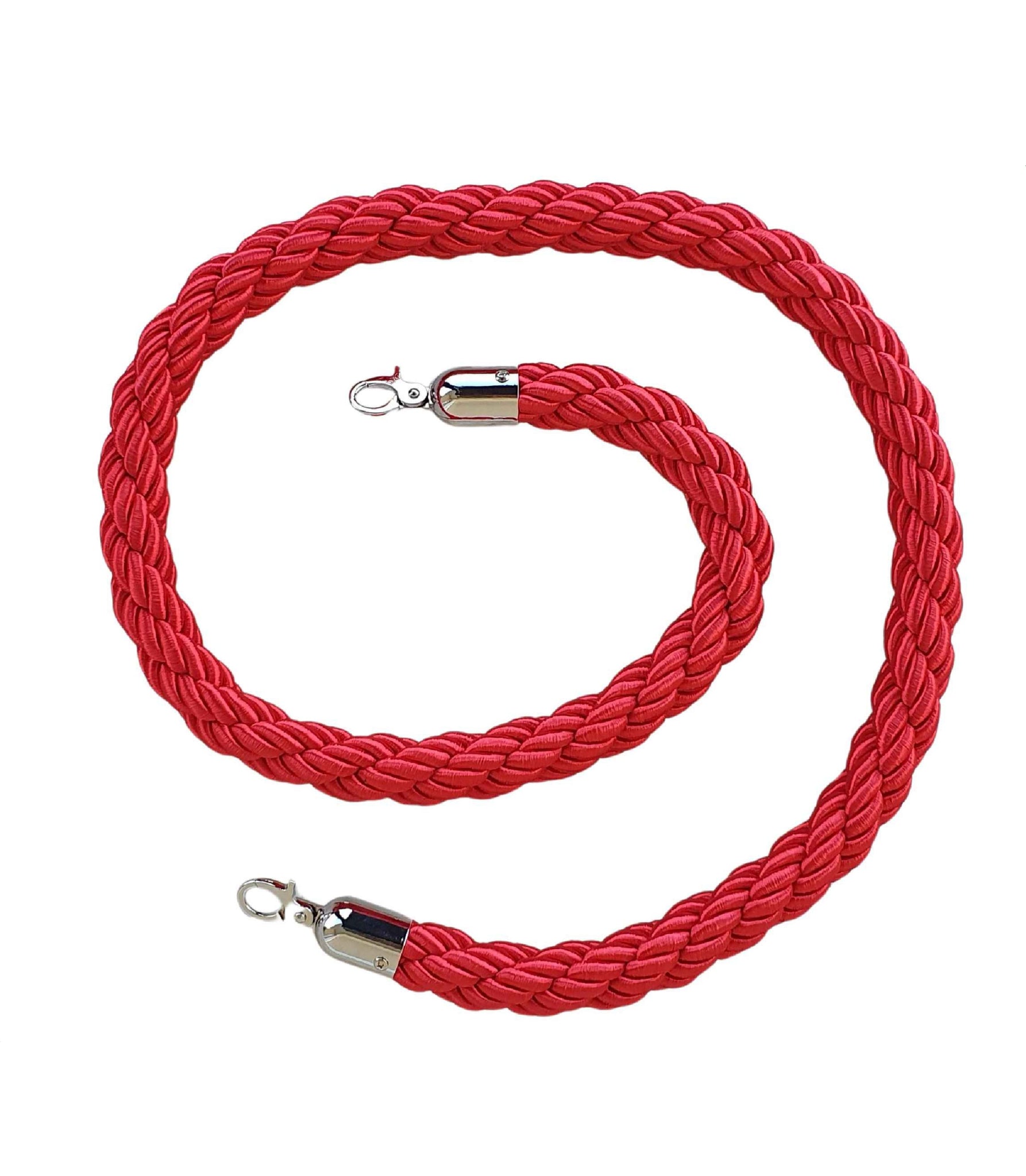 Κορδόνι (σχοινί) πλεγμένο μήκους 150cm από nylon, κόκκινου χρώματος, με ασημί γάντζους στα άκρα.