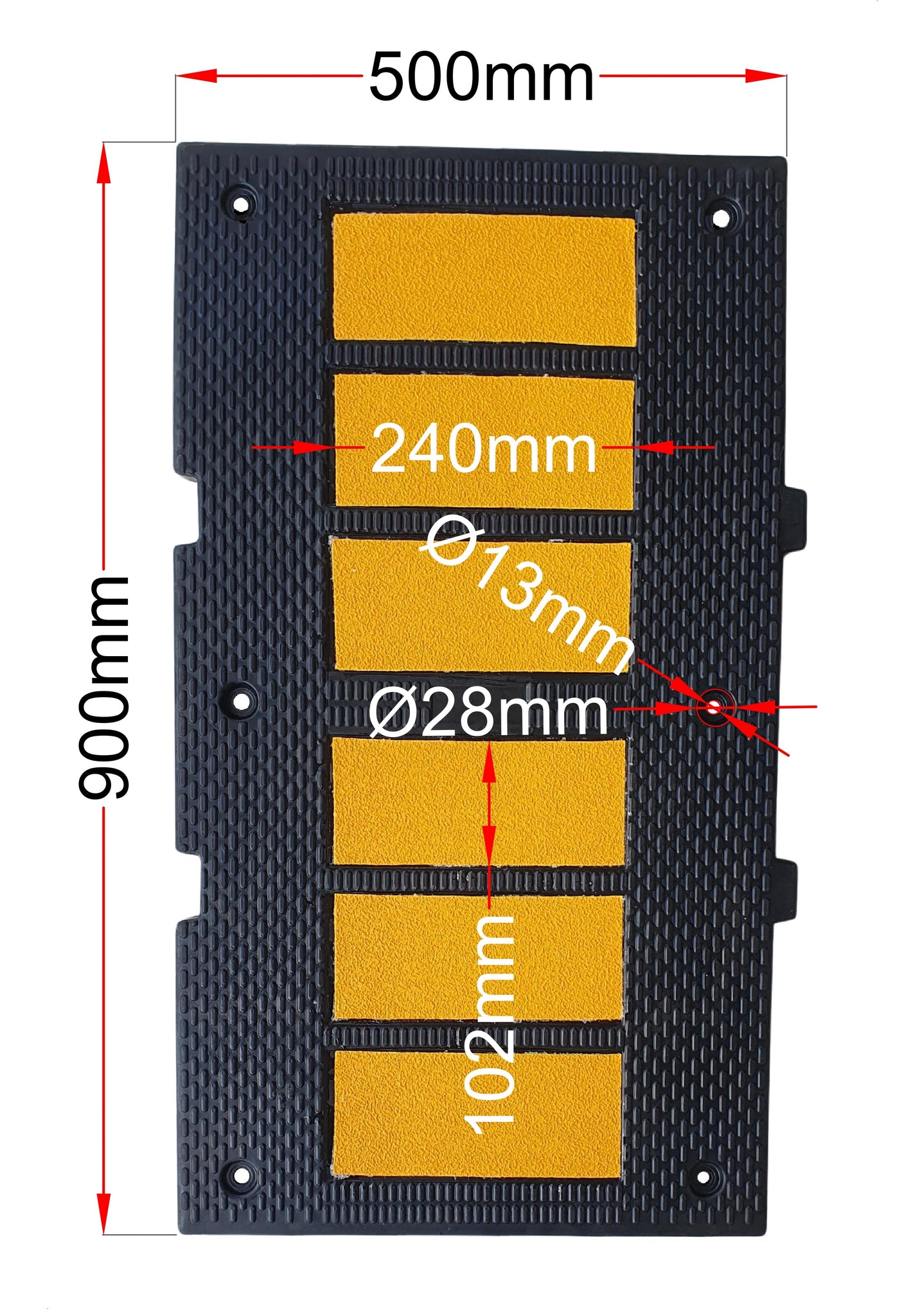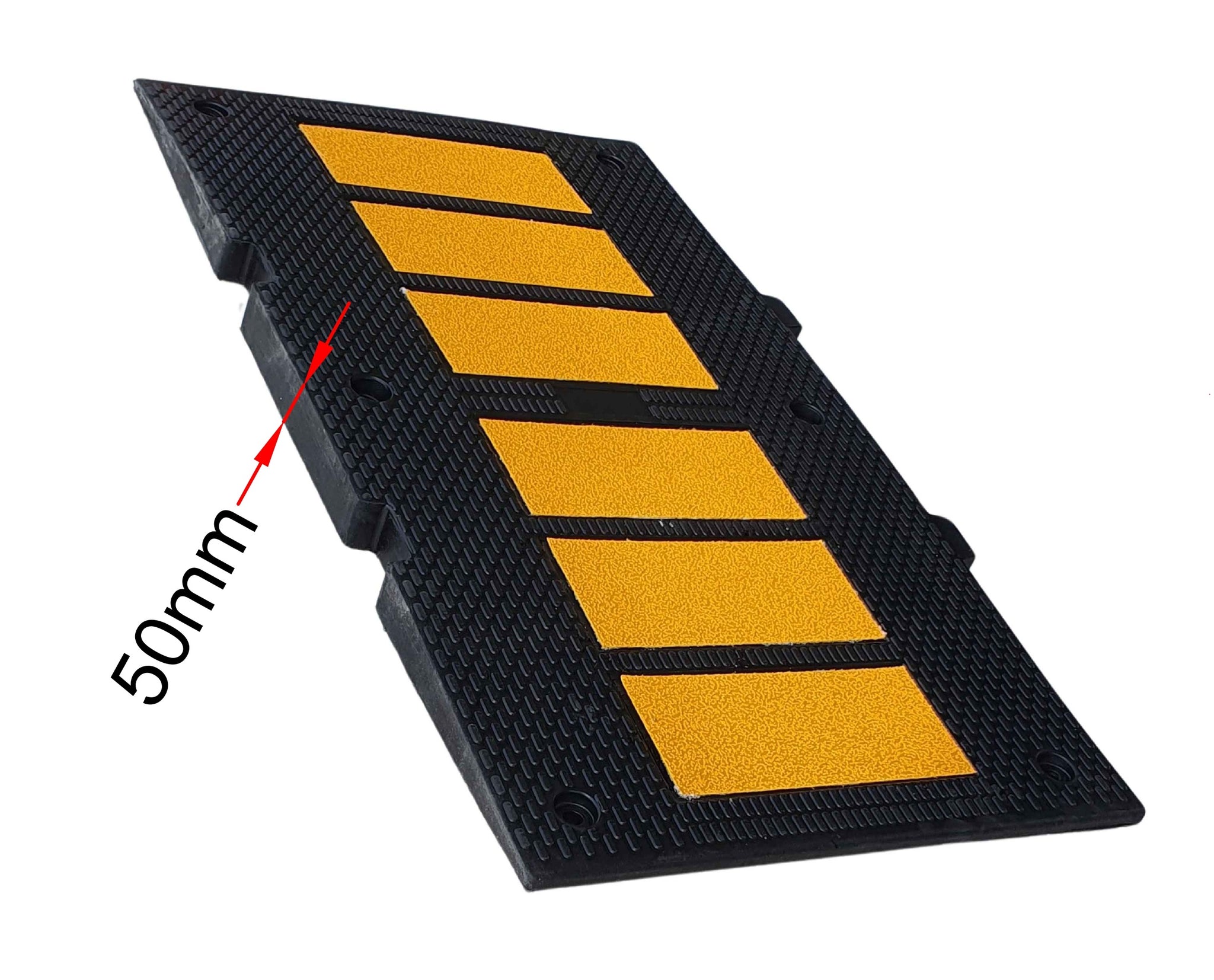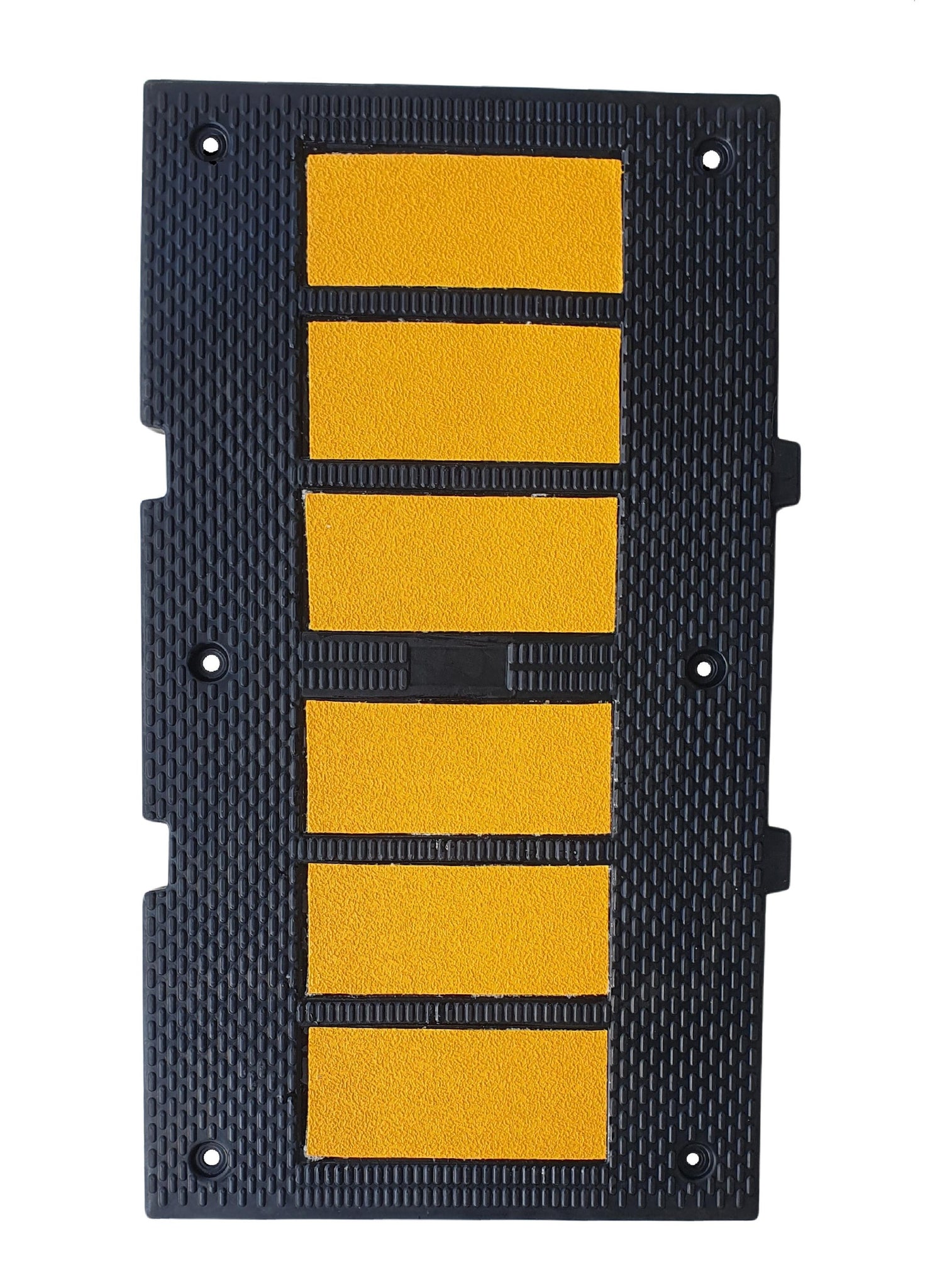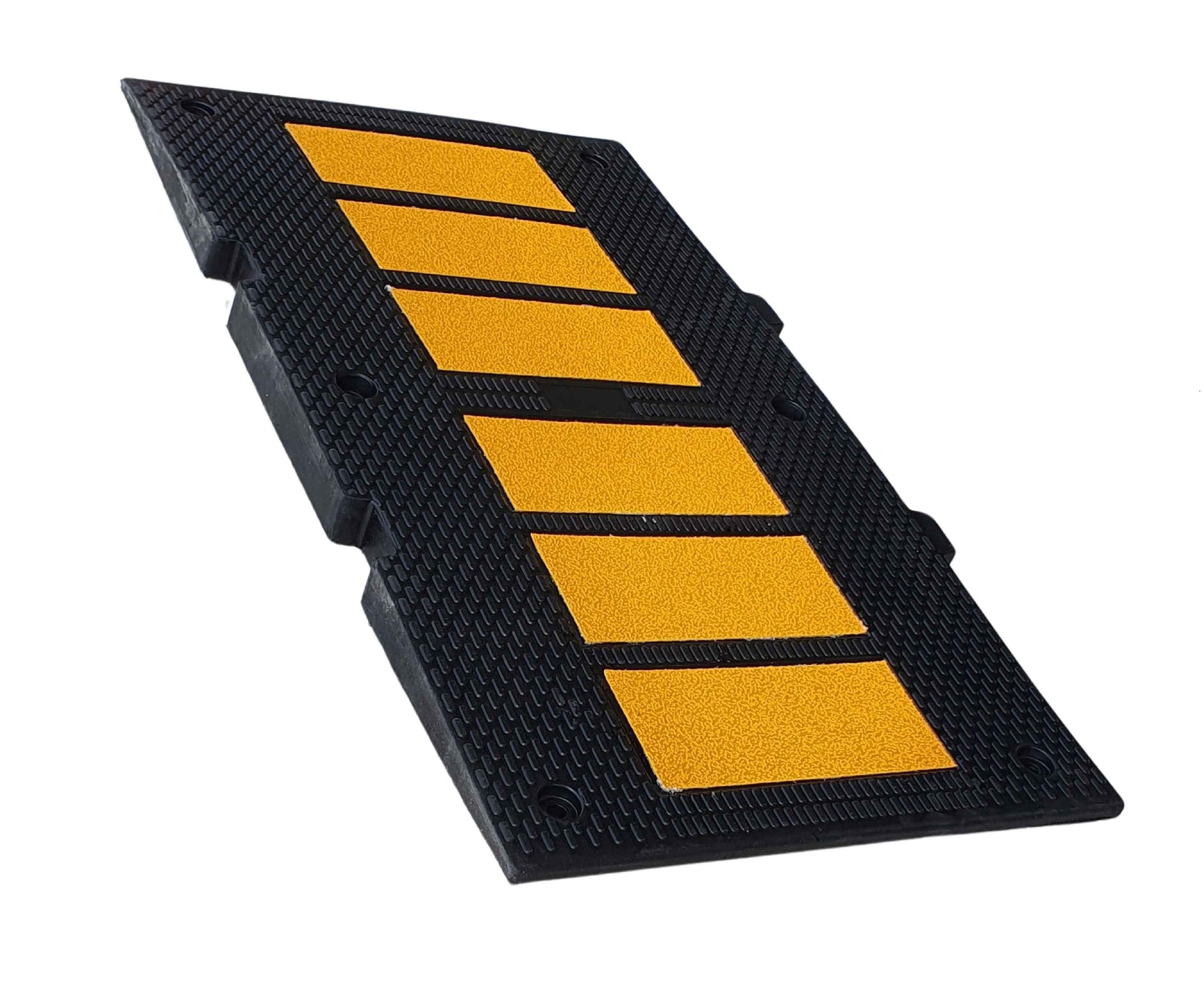 Eίναι κατασκευασμένα από σκληρό καουτσούκ. Για αυτόν τον λόγο αποτελούν φιλικότερη λύση προς τα οχήματα σε σχέση με αντίστοιχους από μπετόν ή άλλα υλικά. Επιπρόσθετα παρουσιάζουν και καλύτερη πρόσφυση με το έδαφος σε σχέση με άλλα υλικά. Οι μειωτήρες ταχύτητας είναι διακριτοί ακόμα και σε συνθήκες χαμηλού φωτισμού χάρη στα έντονα χρώματά τους ή/και στις ανακλαστικές τους ταινίες ή/και στα μάτια γάτας που διαθέτουν, ανάλογα με το μοντέλο τους. Μπορούν να τοποθετηθούν μόνιμα ή προσωρινά, ενώ διαθέτουν ακριανά κομμάτια για όμορφο αισθητικά αποτέλεσμα και μεγαλύτερη ασφάλεια.
