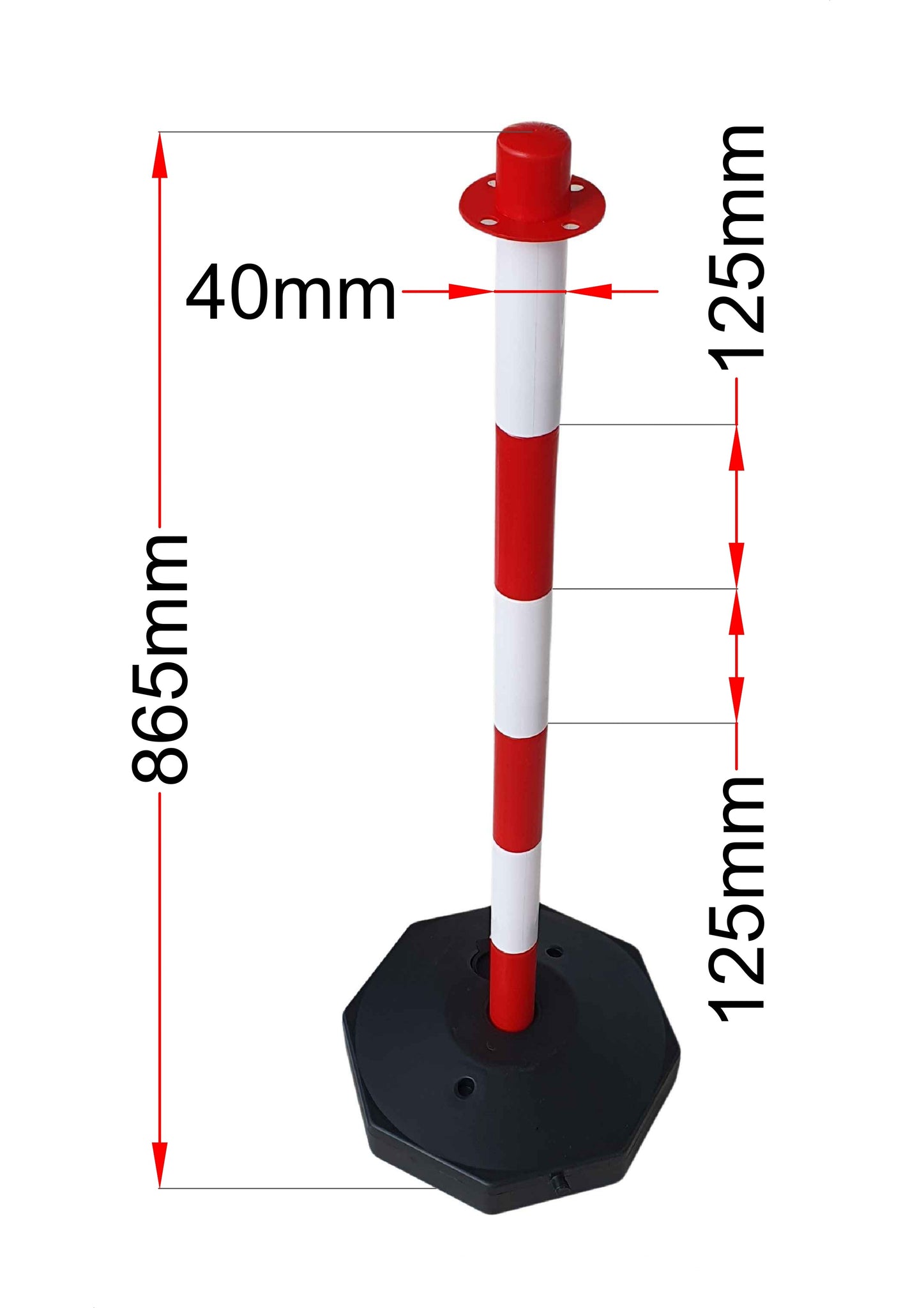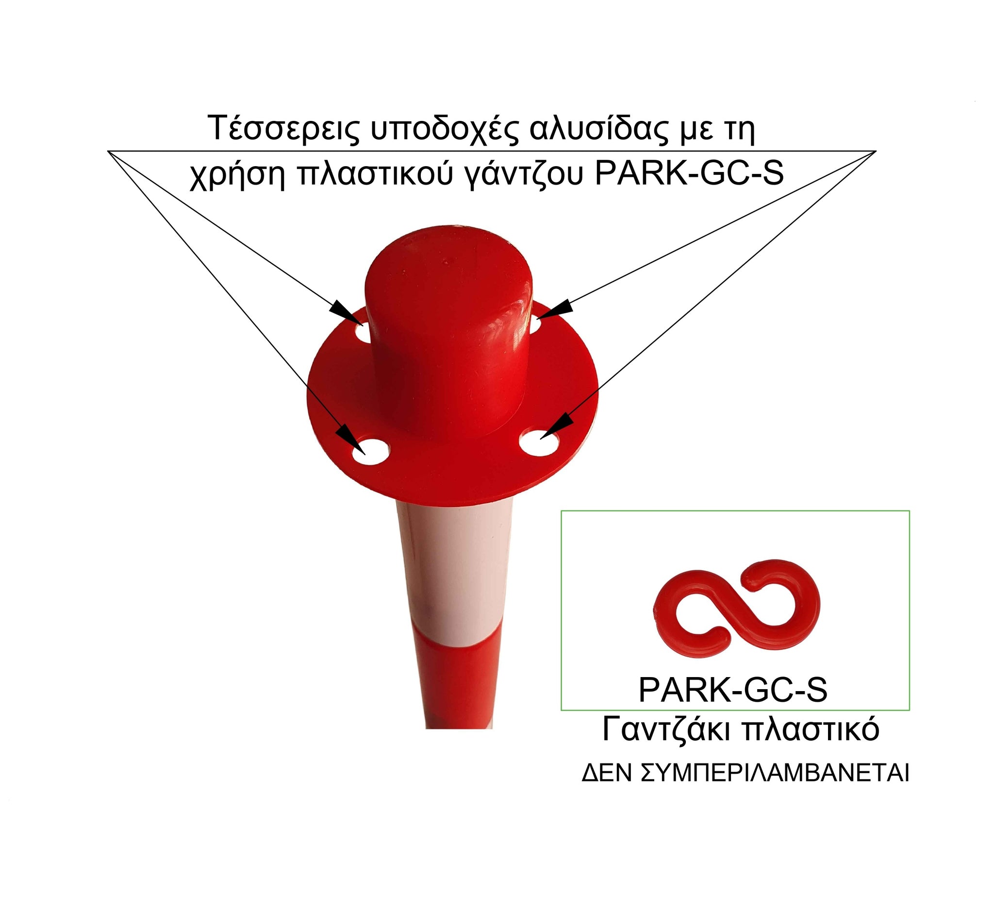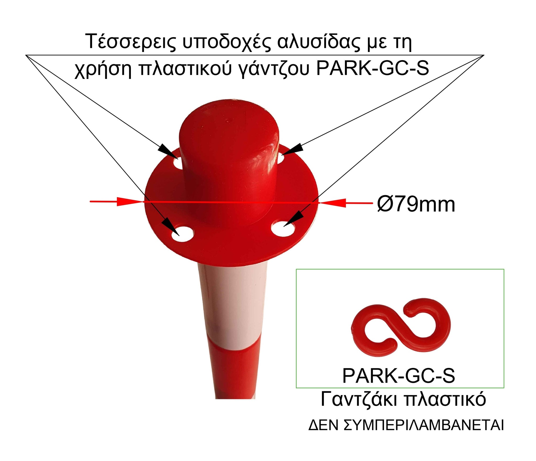 Το κολωνάκι σήμανσης PARK-DH-GC-2 είναι ιδανικό για προσωρινή οριοθέτηση χώρων καθώς δεν χρειάζεται βίδωμα. Διαθέτει υποδοχή για πλαστική αλυσίδα. H βάση είναι αποσπώμενη από τον κορμό του οπότε σε συνδυασμό και με το μικρό της βάρος (0.5kg) όταν είναι άδεια, είναι εξαιρετικά εύκολο στη μεταφορά του. Η σταθερότητά του μπορεί να αυξηθεί όταν γεμίσει η βάση του με νερό ή άμμο έως 3kg. Έχει ύψος 88cm, διάμετρο 4cm και διάμετρο βάσης 28cm.