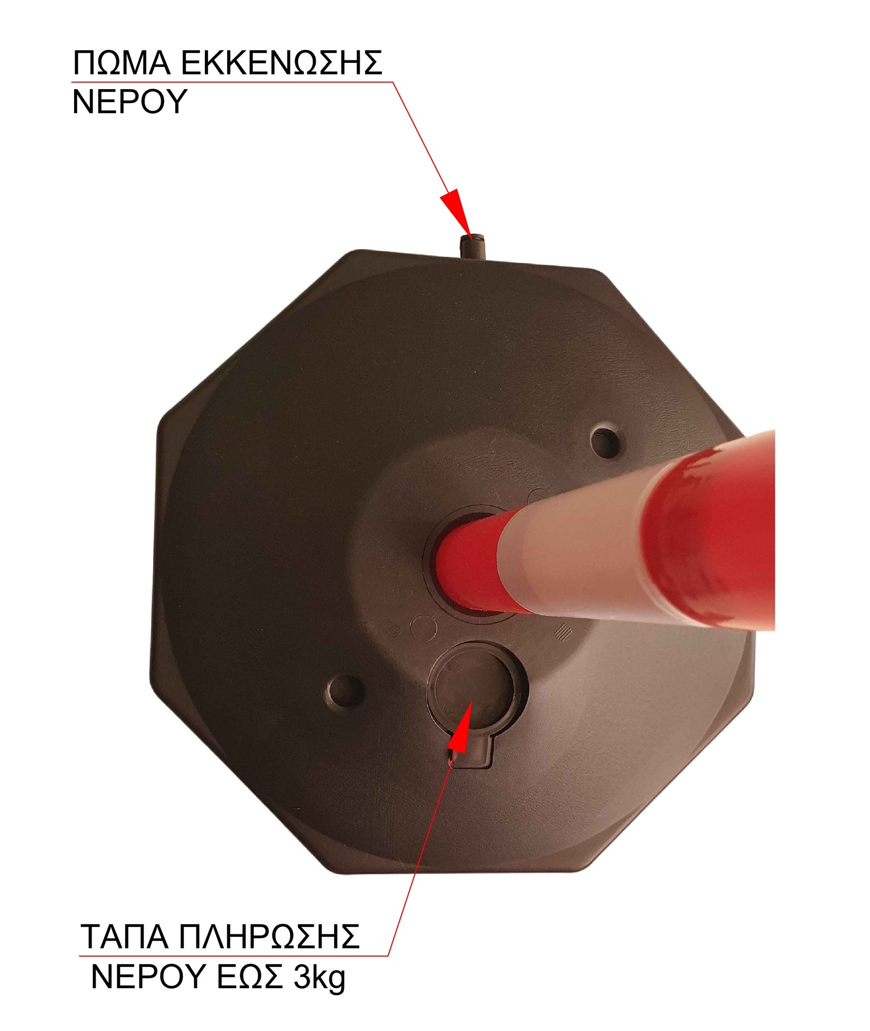 Η τοποθέτησή του είναι απλή διαδικασία: εισάγεται ο κορμός στην ειδική βάση, η οποία γεμίζεται με νερό ή άμμο. Προαιρετικά τοποθετείται πλαστική αλυσίδα όπου είναι επιθυμητό.