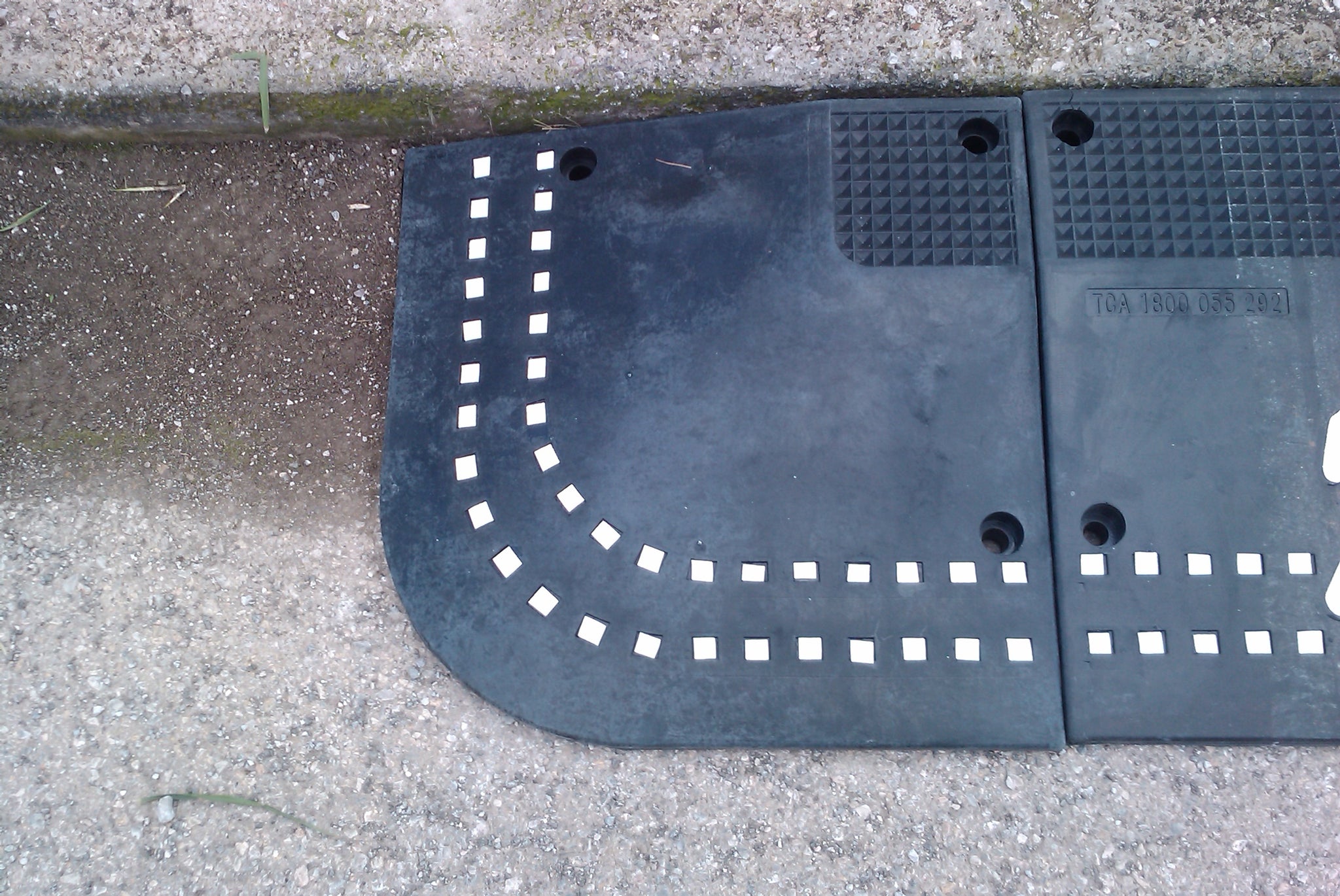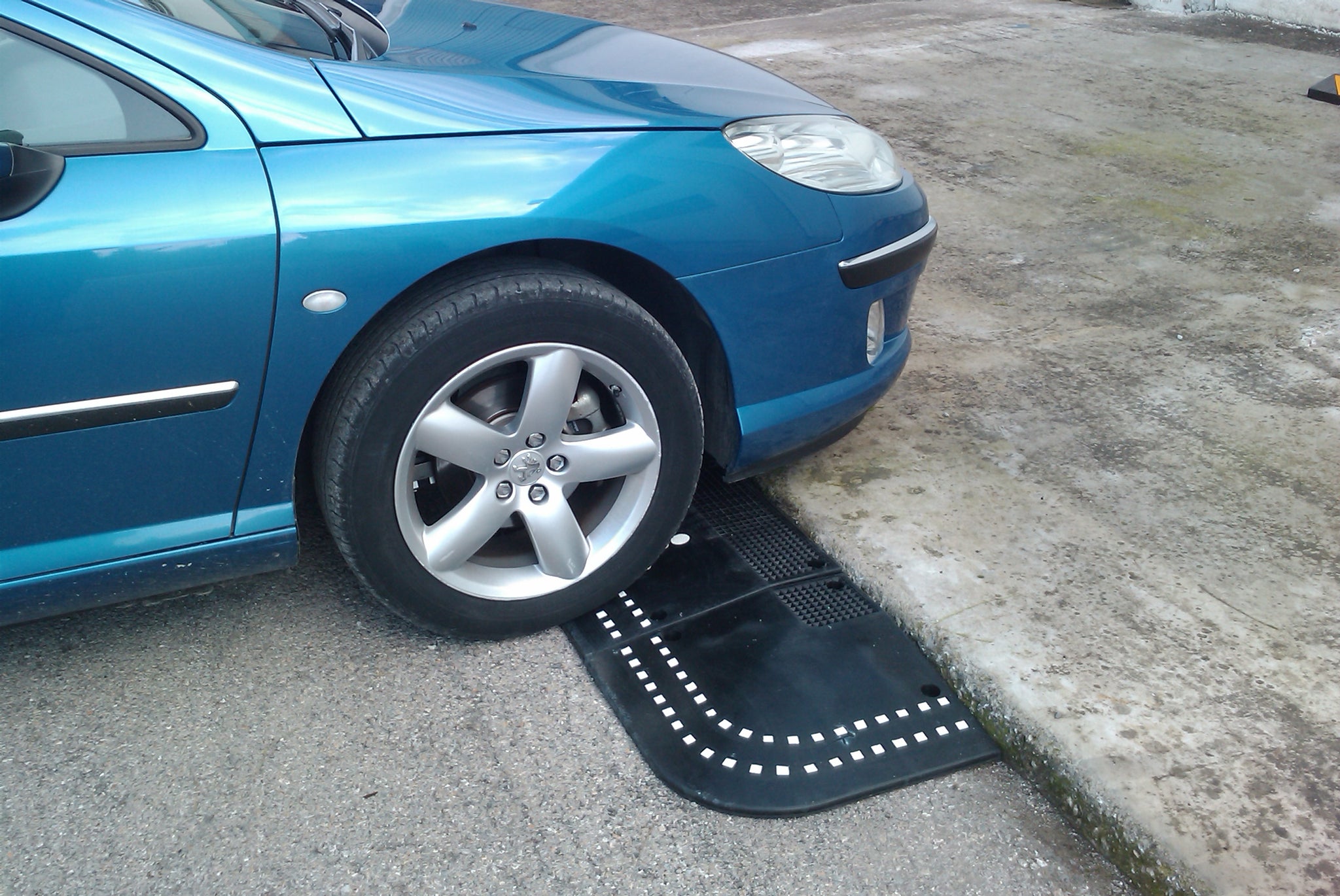 Ακριανή Ράμπα πεζοδρομίου κατασκευασμένη από ανακυκλωμένο λάστιχο. Τα ακριανά τμήματα ράμπας PARK-DH-PC-E ολοκληρώνουν αισθητικά το προϊόν αλλά βοηθούν και τα οχήματα να μην τραυματίζουν τα λάστιχά τους όταν παρκάρουν παράλληλα με τον δρόμο. Ταυτόχρονα, με την τοποθέτησή τους, μειώνεται ο κίνδυνος και για τους πεζούς να σκοντάψουν στις άκρες των ραμπών.
