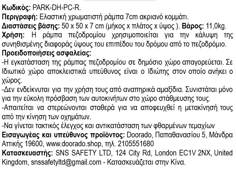 Ελαστική Ράμπα 7 cm Ακριανή PARK-DH-PC-R