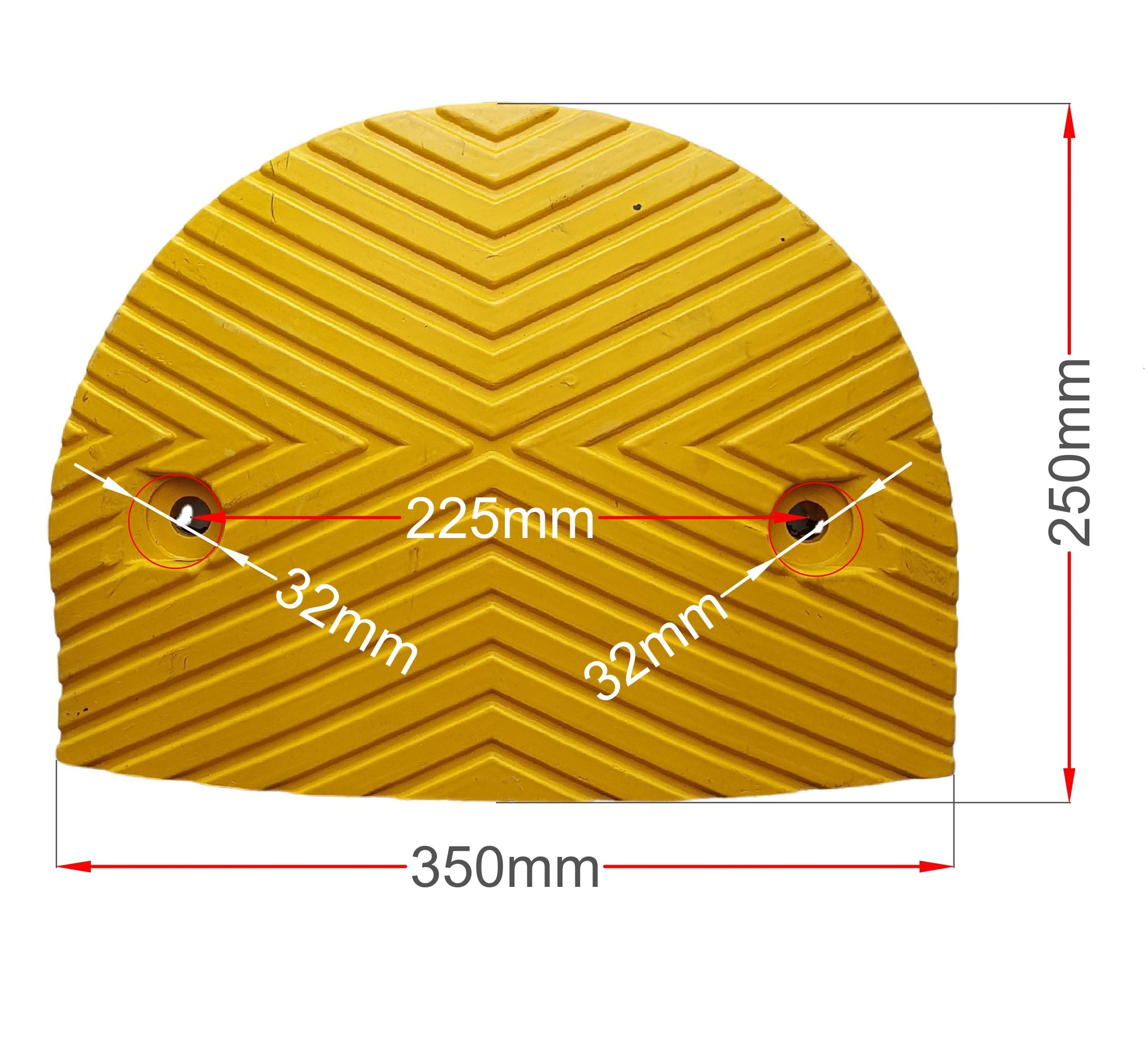 Eίναι κατασκευασμένα από σκληρό καουτσούκ. Για αυτόν τον λόγο αποτελούν φιλικότερη λύση προς τα οχήματα σε σχέση με αντίστοιχους από μπετόν ή άλλα υλικά. Επιπρόσθετα παρουσιάζουν και καλύτερη πρόσφυση με το έδαφος σε σχέση με άλλα υλικά. Οι μειωτήρες ταχύτητας είναι διακριτοί ακόμα και σε συνθήκες χαμηλού φωτισμού χάρη στα έντονα χρώματά τους ή/και στις ανακλαστικές τους ταινίες ή/και στα μάτια γάτας που διαθέτουν, ανάλογα με το μοντέλο τους. Μπορούν να τοποθετηθούν μόνιμα ή προσωρινά, ενώ διαθέτουν ακριανά κομμάτια για όμορφο αισθητικά αποτέλεσμα και μεγαλύτερη ασφάλεια.